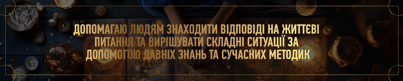 Моя робота ґрунтується на поєднанні інтуїції, родових знань та сучасного розуміння енергії людини. Через спеціальні практики — вичитку, очищення, роботу зі словом і символами — я допомагаю побачити глибинну причину труднощів, зняти енергетичний тягар і повернути спокій.